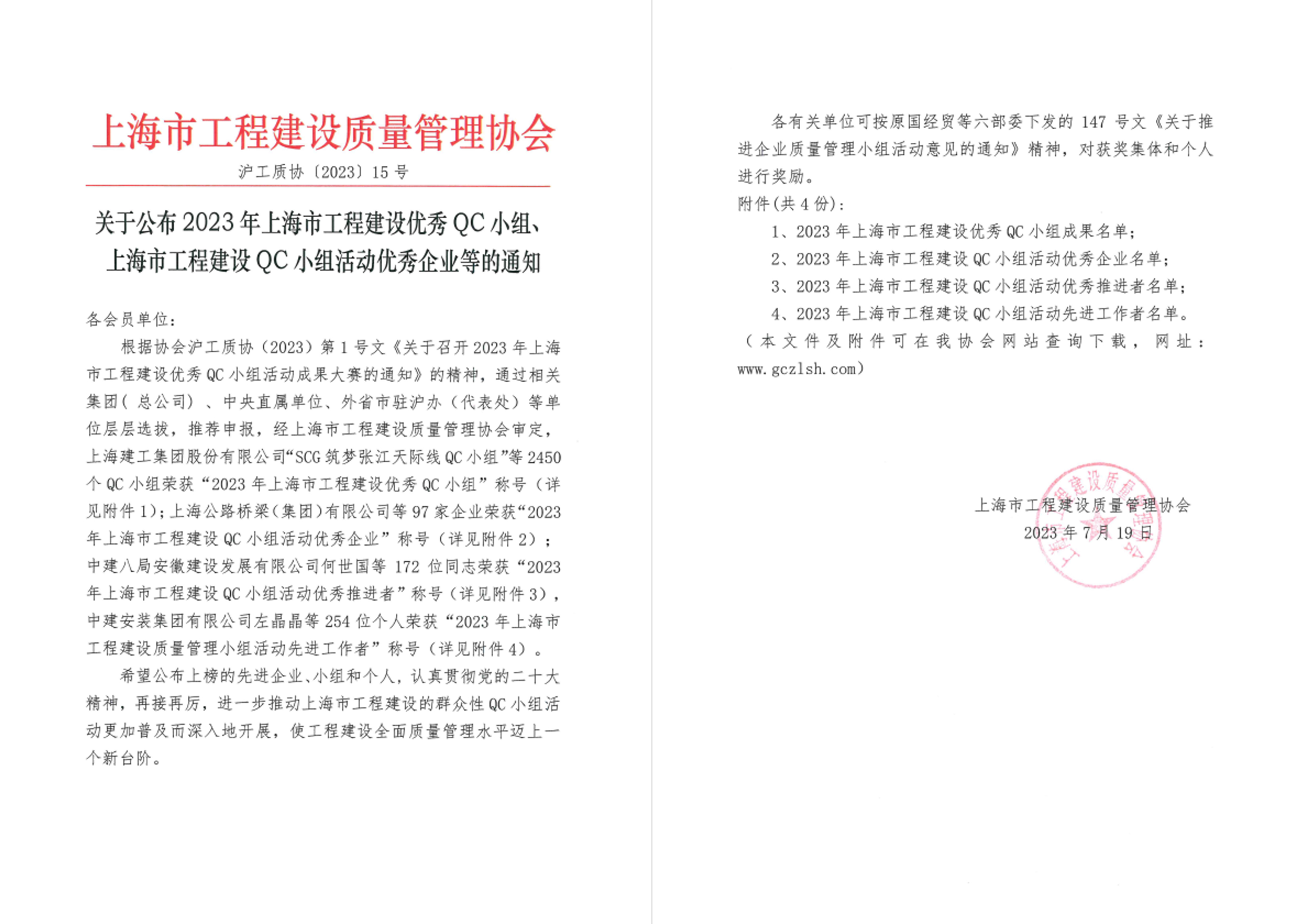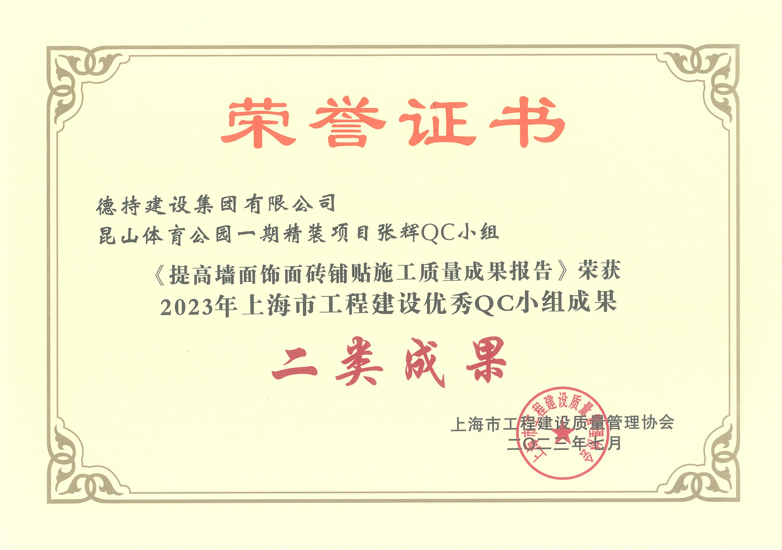 近期,上海市工程建設質量管理協會公布了2023年上海市工程建設優秀QC小組、上海市工程建設QC小組活動優秀企業表彰名單,我司榮獲2023年上海市工程建設“優秀QC小組二類成果”1項、“優秀QC小組三類成果”2項。